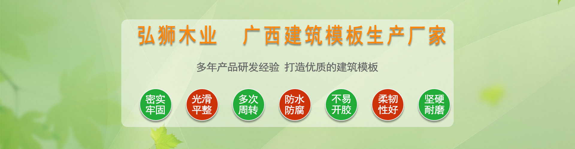 廣西弘獅木業有限公司是一家專業從事建筑模板研發、制造的綜合性高新技術企業,自成立以來一直致力于建筑模板的研發、生產、銷售,公司擁有200畝的刨板、曬板基地和100畝的模板生產車間,目前擁有50條專業生產線,日產量達到4萬張/日。公司從采購木材到生產模板都嚴格執行,所有成品都要經過嚴格檢測才安排給客戶發貨。